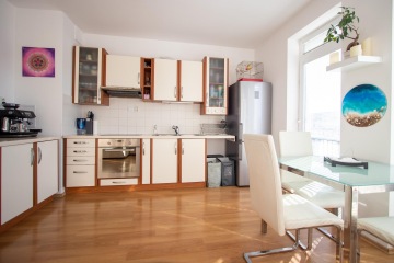 Plávajúce podlahy, dlažba v kúpeľni, kuchynská linka so spotrebičmi, chladnička s mrazničkou,